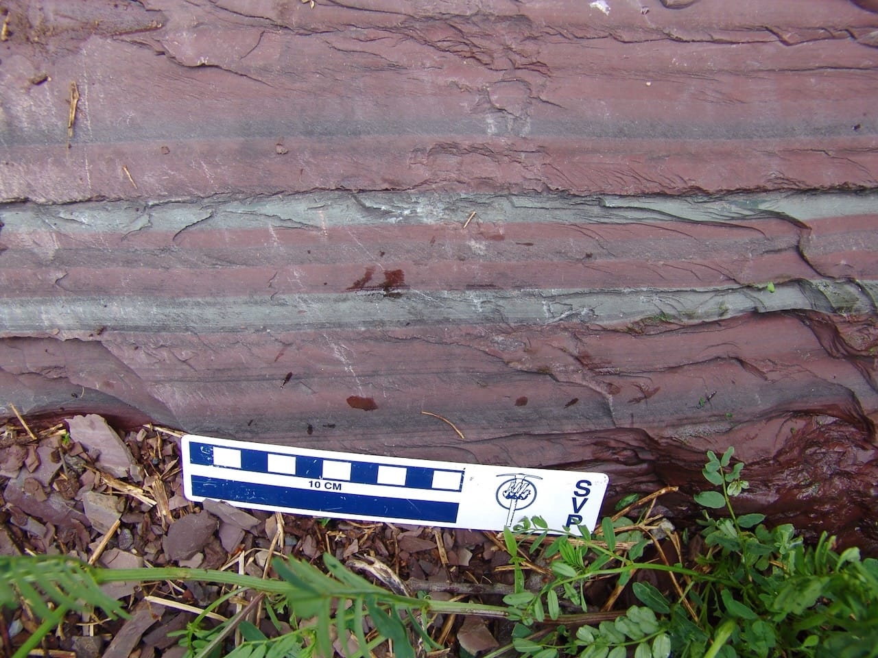 It turns out that late Proterozoic sediments from all over the world show evidence of glacial activity. Andy Moore gave me this rock, from his backyard in Indiana. It is a tillite (another type of glacial rock), from the late Proterozoic of Canada (ironically, it was carried to Indiana by glaciers during the most recent Ice Age, around 15,000 years ago.)