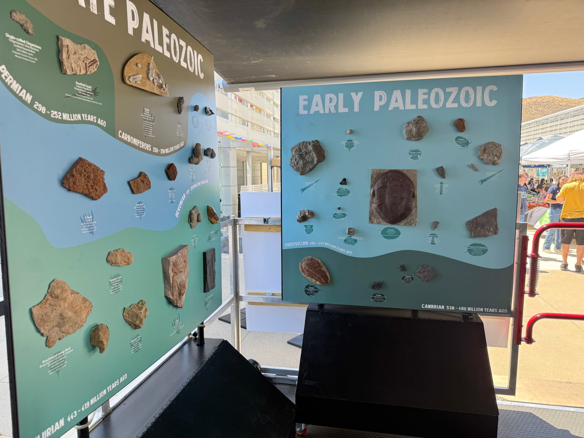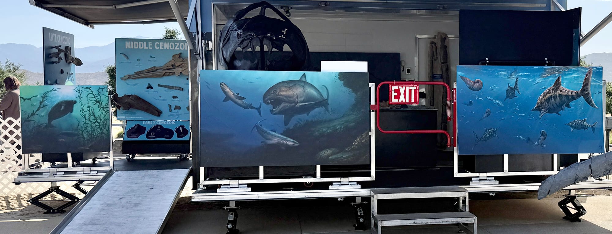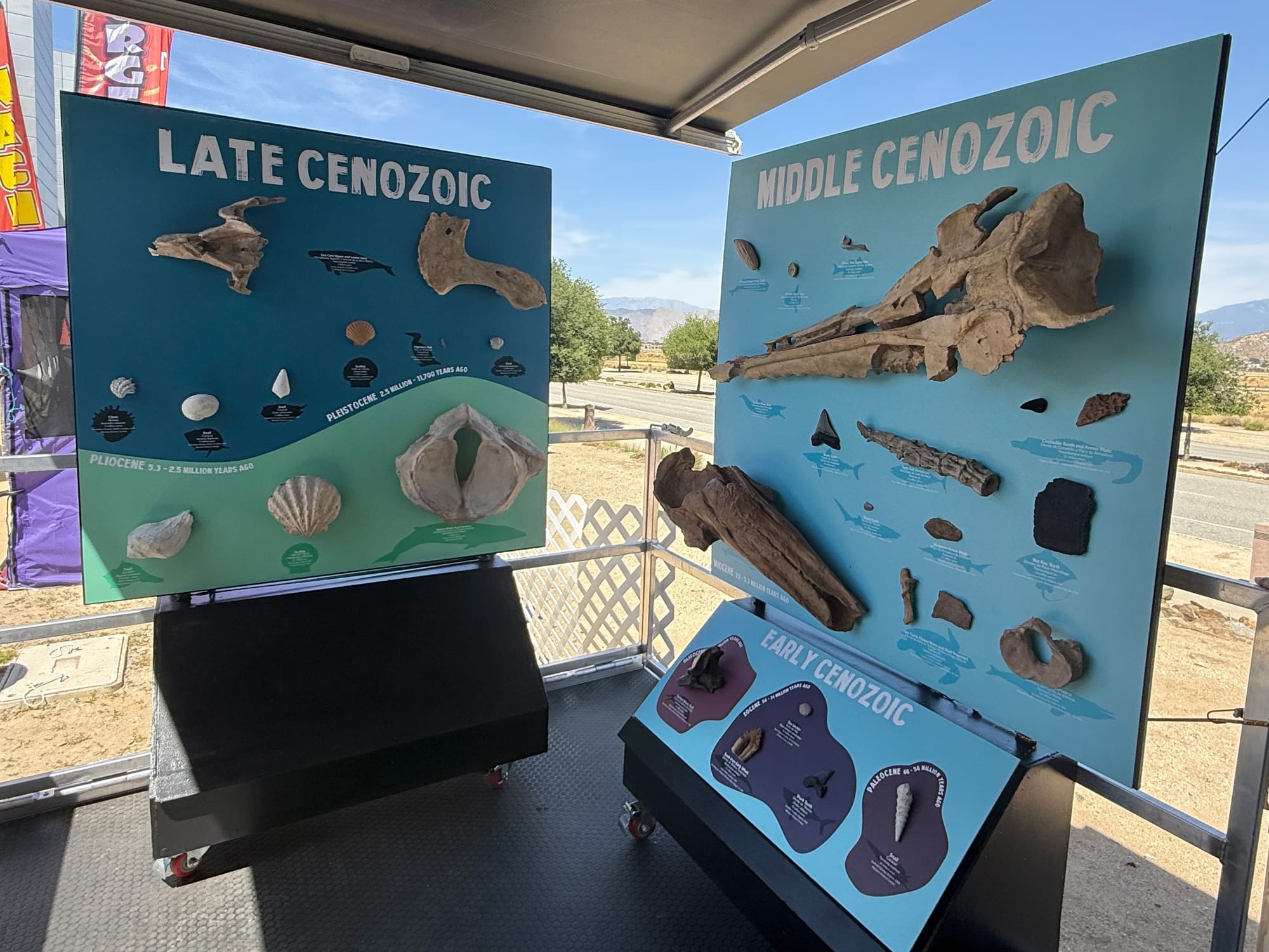 Max’s Mobile Museum was designed from the outset to allow for rotating exhibits that could be changed out quickly. At last Saturday’s Inland Empire Science Festival we debuted our first new Mobile Museum exhibit since 2022, Life in the Ancient Seas.