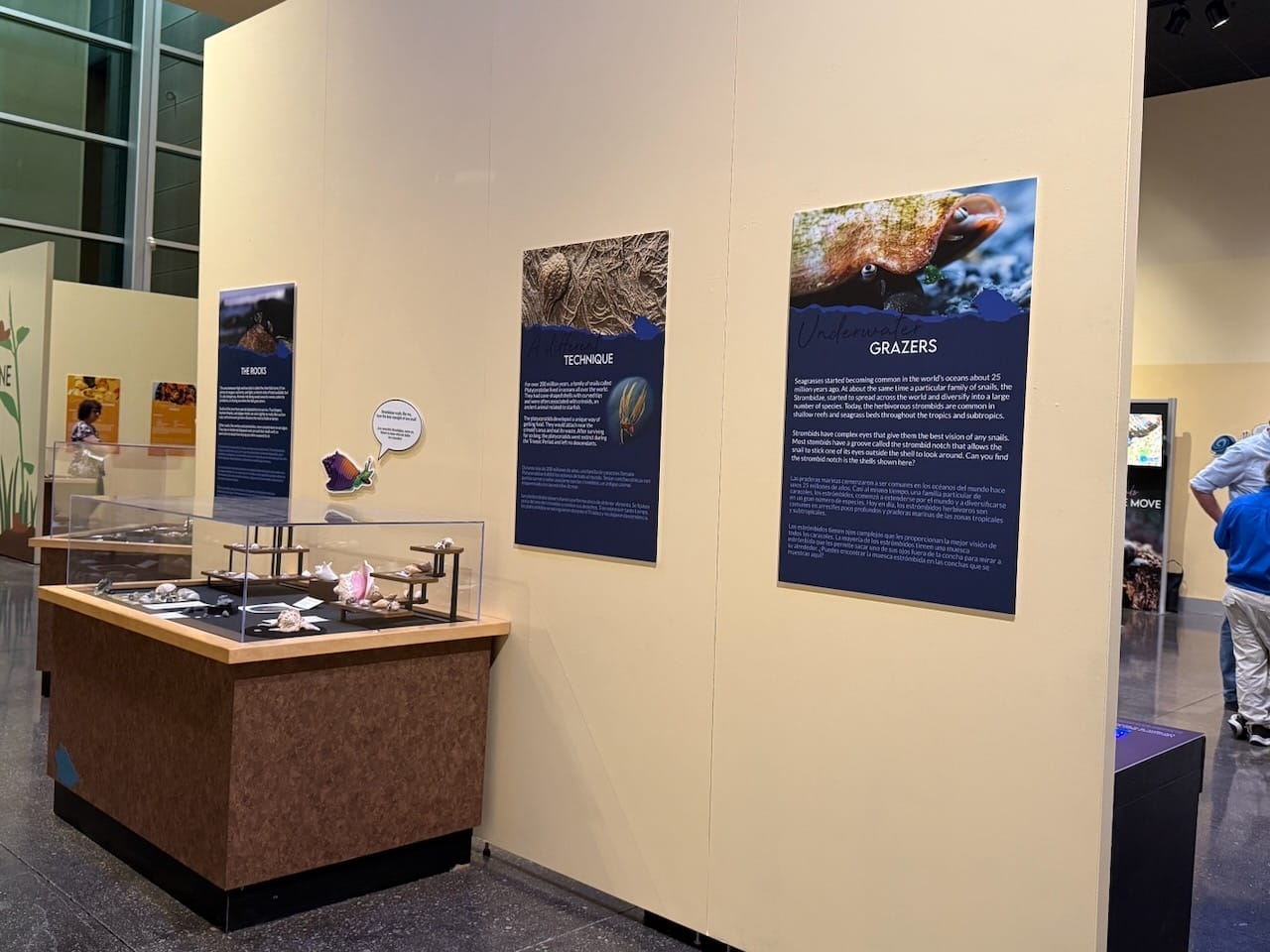 The exhibit includes sections on diet, reproduction, the different ways snails use their shells, the interactions between humans and snails, invasive species, and more. Besides WSC staff, numerous scientists from other institutions contributed expertise, videos, and more, including Dr. Nathan Robinson, Dr. Robbie Rae, Dr. Allison Gong, and Dr. Jann Elizabeth Vendetti.
