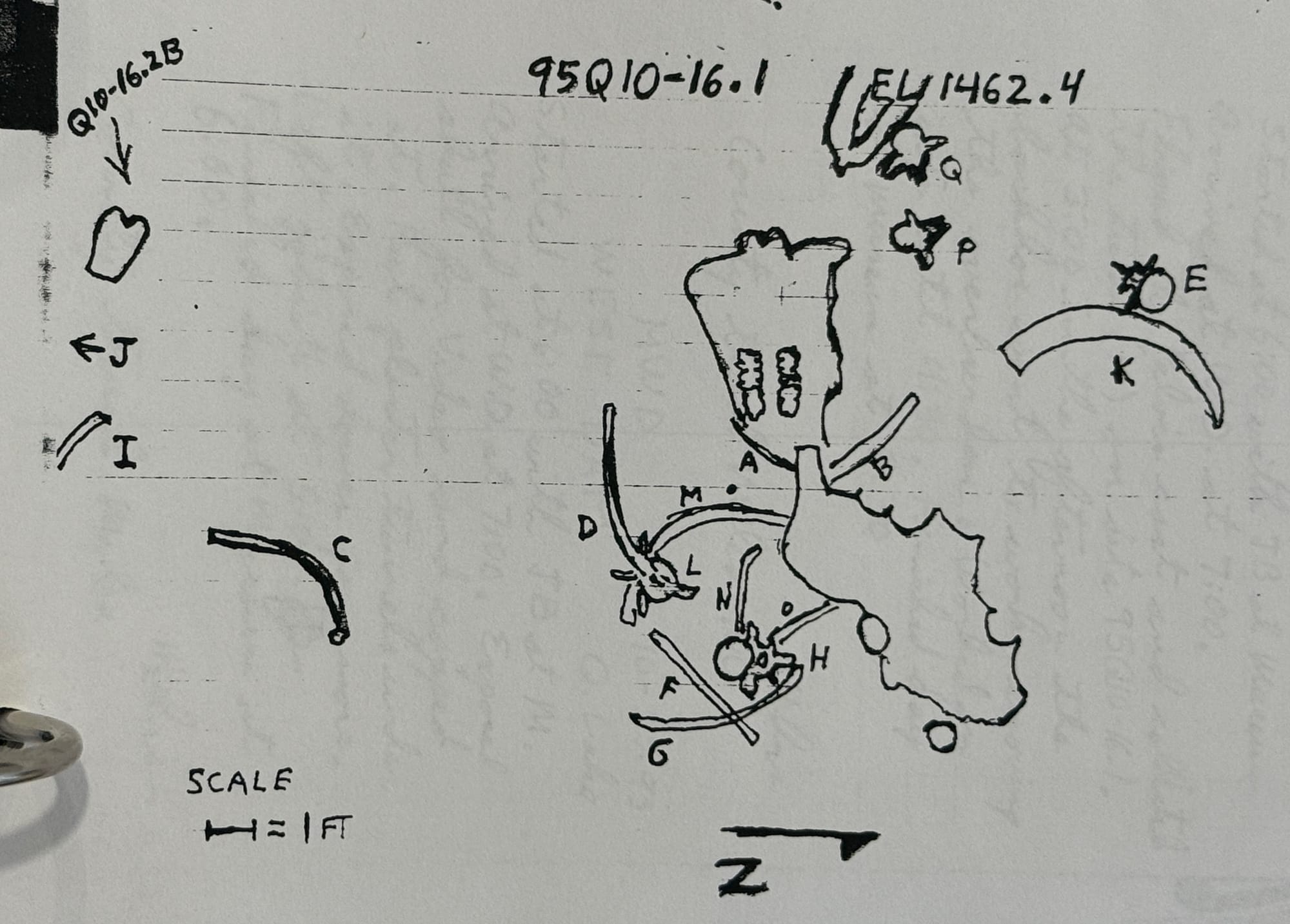 On October 16, 1995 Quinton Lake was at the West Dam construction site and made the following entry in his notebook, establishing field site 95Q10-16.1: